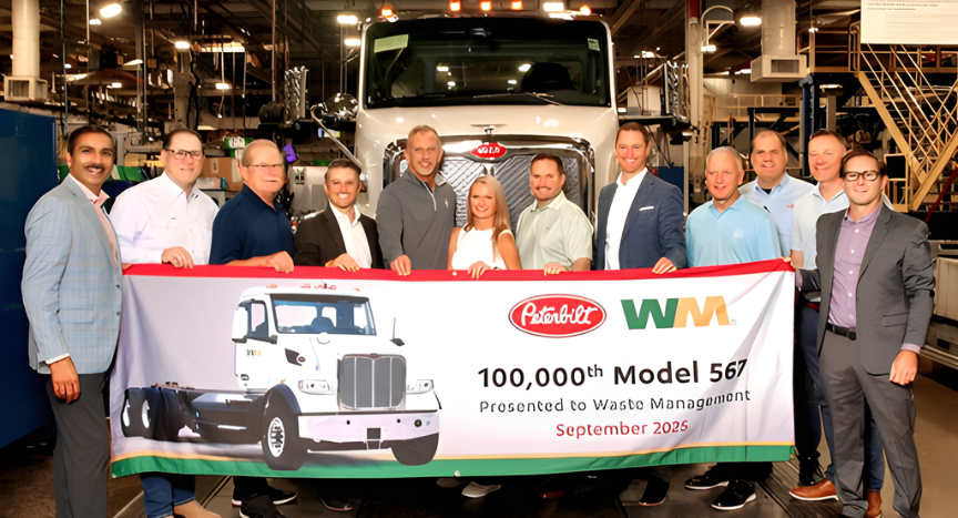 Todd Poste, vice president of supply chain and chief procurement officer at WM, underscored the relationship between the companies. “We’re honored to accept the 100000th Peterbilt Model 567. Our partnership with Peterbilt and Rush Refuse Systems has been instrumental in helping us deliver on our mission of environmental responsibility and operational excellence. We look forward to continuing this relationship as we drive toward a more sustainable future.”